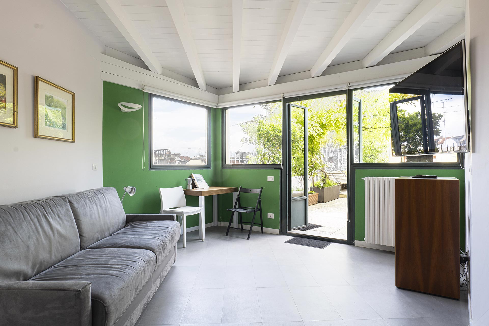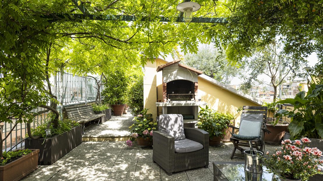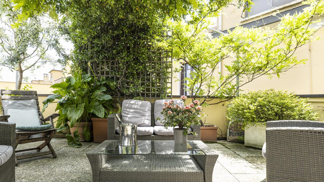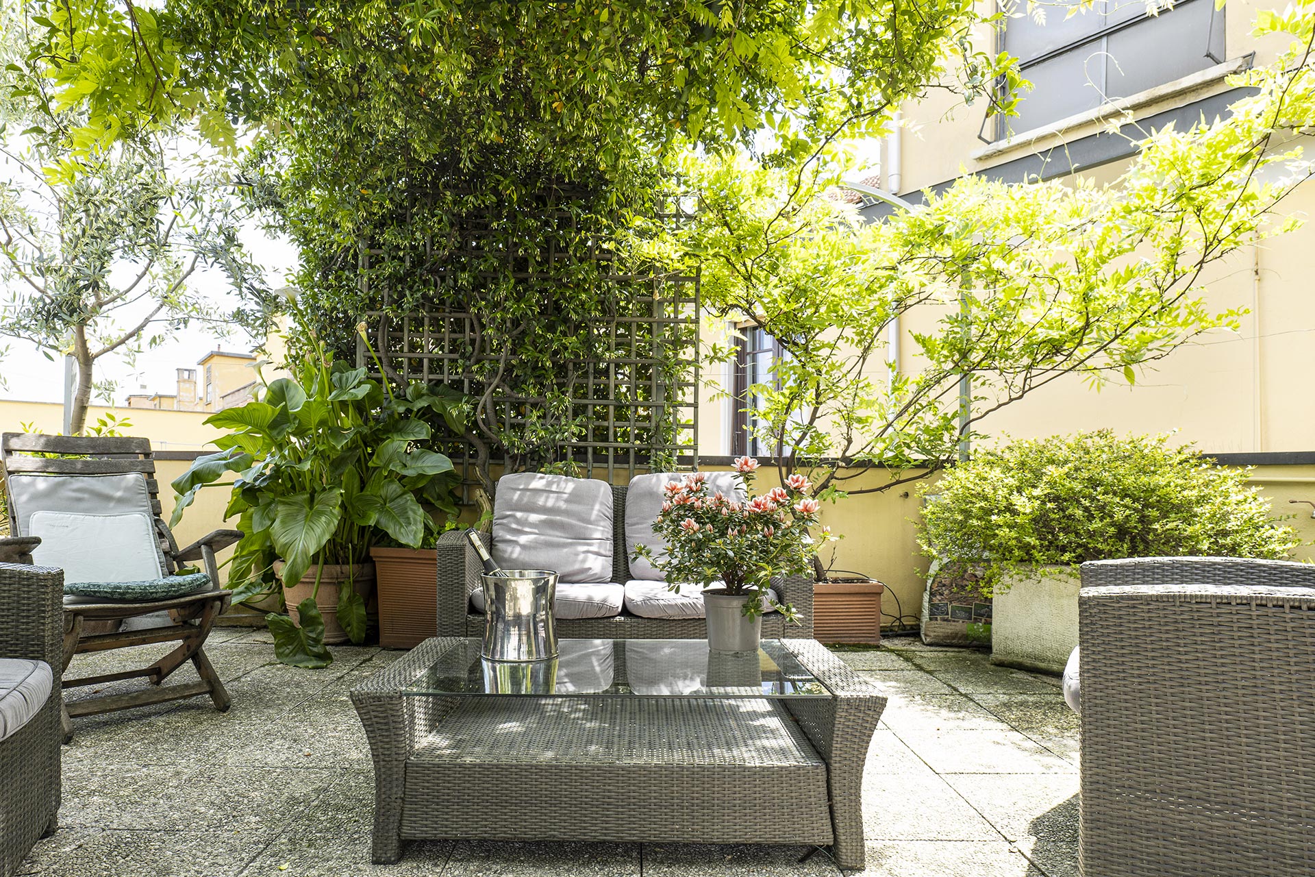 In un palazzo liberty degli anni Venti, esattamente sulla fermata Lima della Metropolitana 1, proponiamo un bellissimo appartamento all’ultimo piano (con ascensore!) dotato di un terrazzo ad uso esclusivo di 100mq arredato con agrumi, ulivi, glicini, oleandri, rose e un ombroso fico. Il terrazzo è stato segnalato dal Corriere della Sera, il principale quotidiano italiano, quale uno dei più belli di Milano!
