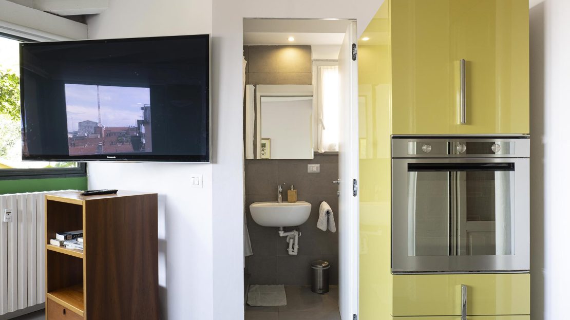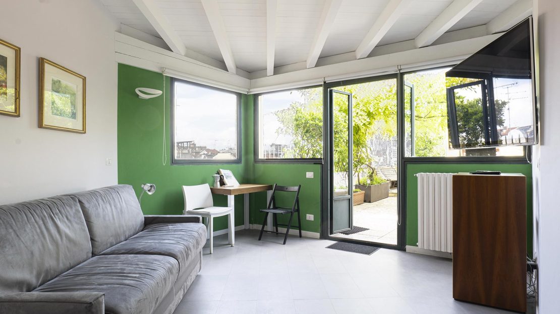 Arredato alla pareti con quadri d’autore contemporanei, è fornito anche di piccola biblioteca e videoteca. Posto al centro di una delle arterie commerciali più grandi d’Europa, consente di raggiungere con 4 fermate di metropolitana Piazza del Duomo, il Teatro alla Scala, San Babila in 8′ a piedi la Stazione Centrale.
